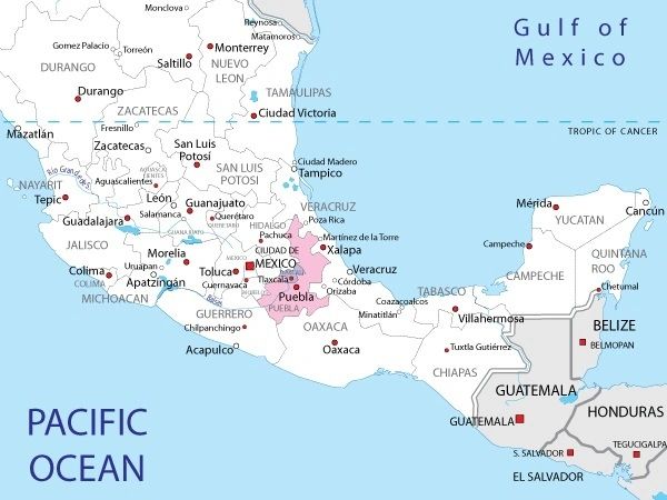 It is located in (southern) Central Mexico on the main route between the capital, Mexico City and Mexico's main Atlantic port, Veracruz.